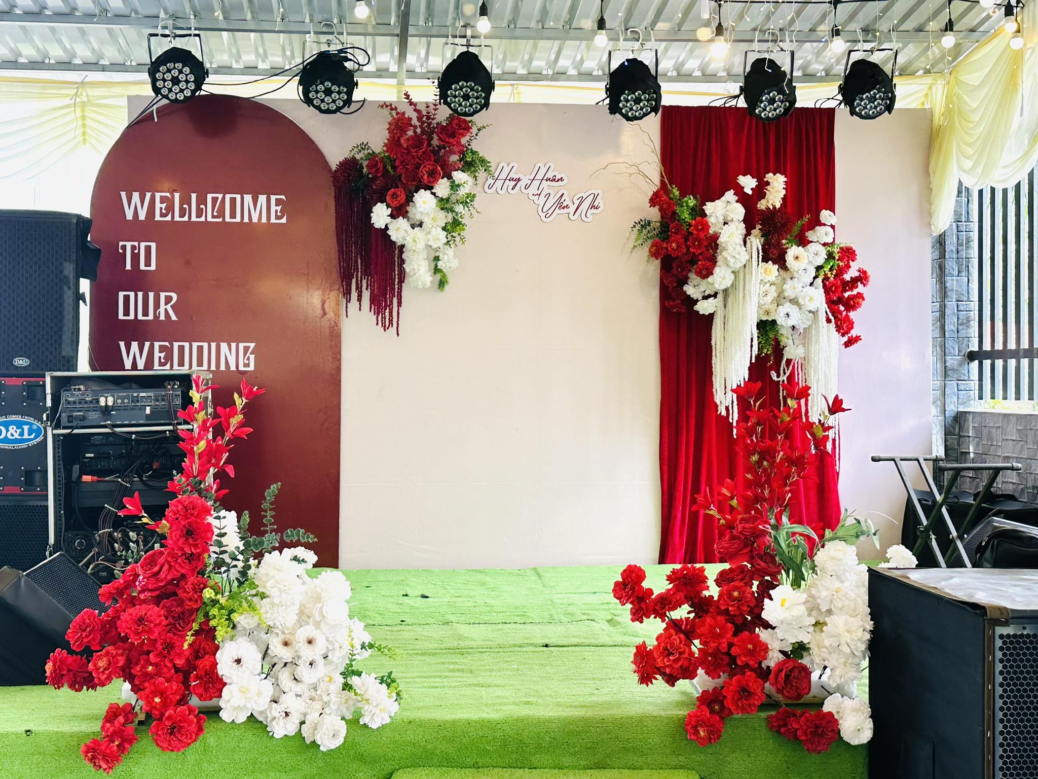 Thi công rất nhanh, backdrop chắc chắn và màu hoa phối rất sang trọng. 10 điểm cho Mỹ Thanh.